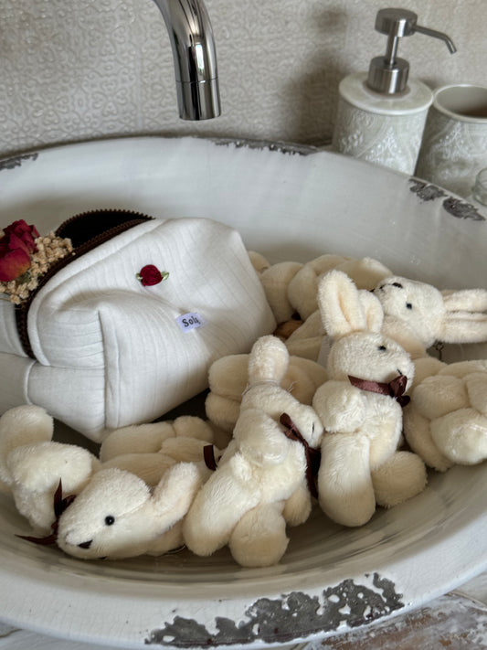 Casaco Creme de Mangas Largas com Detalhe de Renda e Flor Vermelha